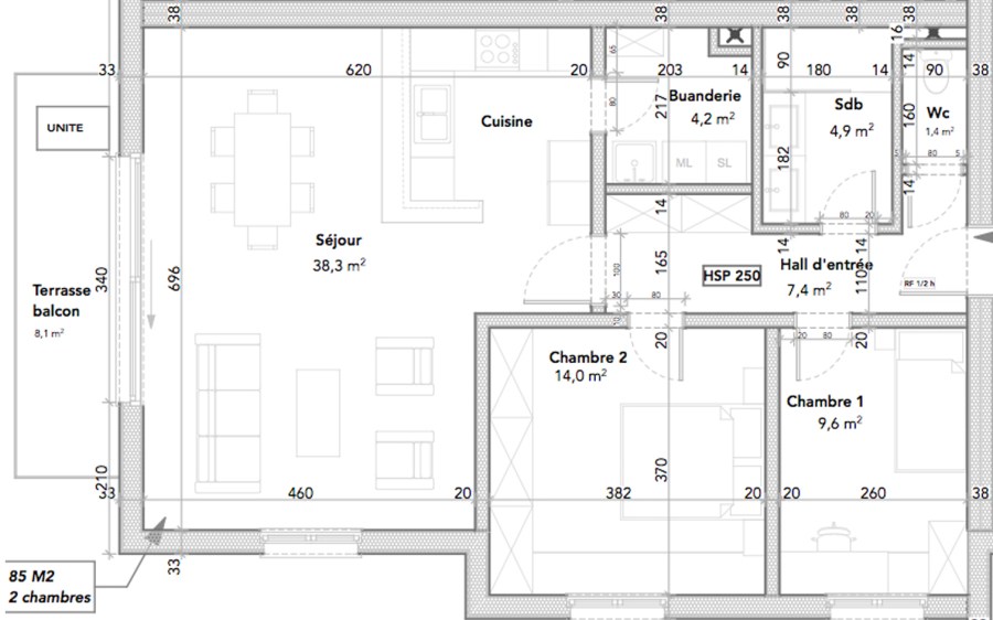 Chaque appartement dispose d’un emplacement de parking intérieur et d’une terrasse privative. Vous apprécierez le confort d’un immeuble moderne, lumineux et soucieux de l’environnement. En effet, une attention particulière a été portée à la consommation énergétique: la résidence est conforme aux normes énergétiques K23, ce qui équivaut à une résidence très basse consommation. Un plus pour l’écologie, un plus pour votre économie.